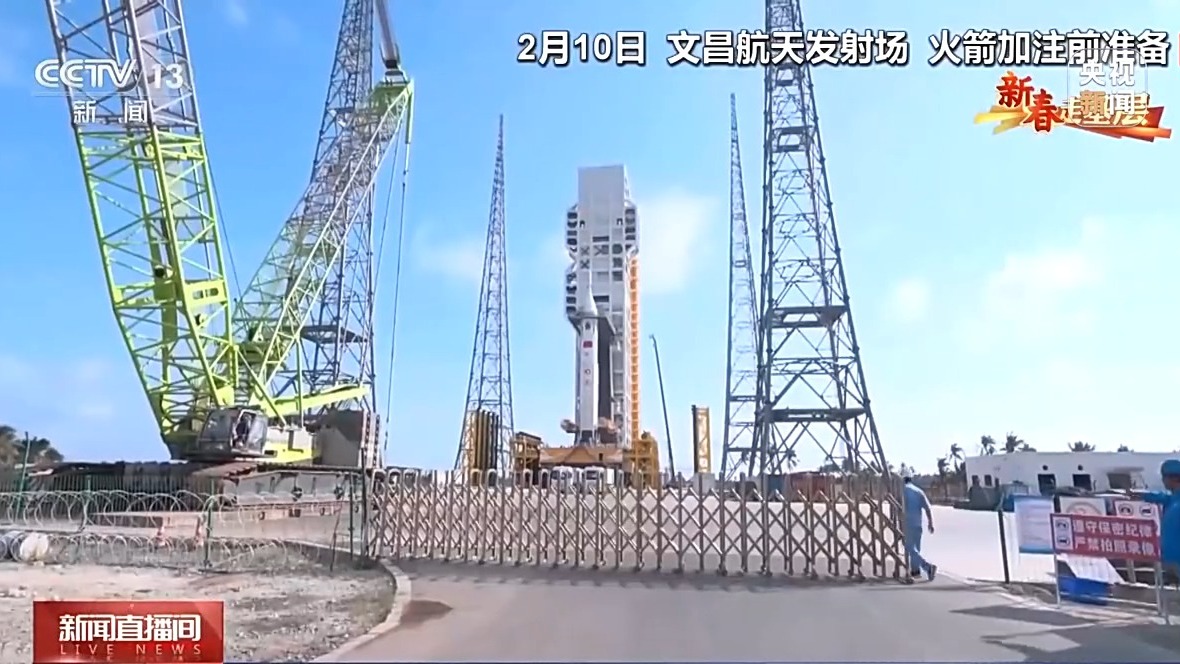 總臺央視記者 王曉丹:由于長征十號的測發(fā)指控大樓還在建設(shè)當(dāng)中,為了確保各項試驗任務(wù)如期推進,科研人員暫時把火箭后端測發(fā)系統(tǒng)臨時搭建在集裝箱方艙內(nèi),在這里對火箭進行發(fā)射前的各項遠程控制、測試和檢查等工作。