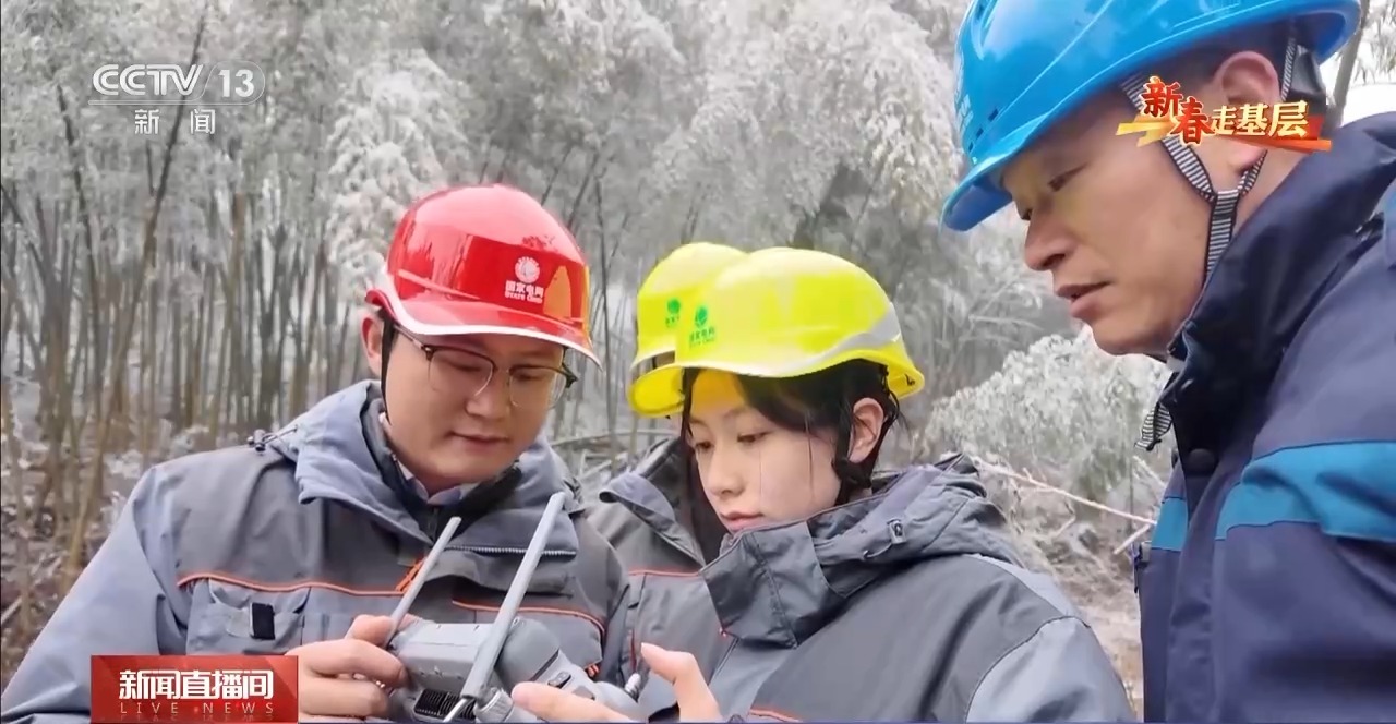 不過,老師傅的經(jīng)驗(yàn)也絕不是白來的。很快,鮑師傅通過無人機(jī)監(jiān)視器發(fā)現(xiàn)空中一處電線的覆冰問題。
