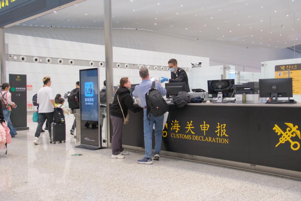 廣州白云機(jī)場海關(guān)旅檢二處旅檢三科科長馮瑞林介紹:“我們在口岸增派外語專業(yè)關(guān)員,提供多語種、全時(shí)段咨詢與辦理服務(wù),同時(shí)進(jìn)一步優(yōu)化航站樓引導(dǎo)標(biāo)識,讓旅客更感賓至如歸。”