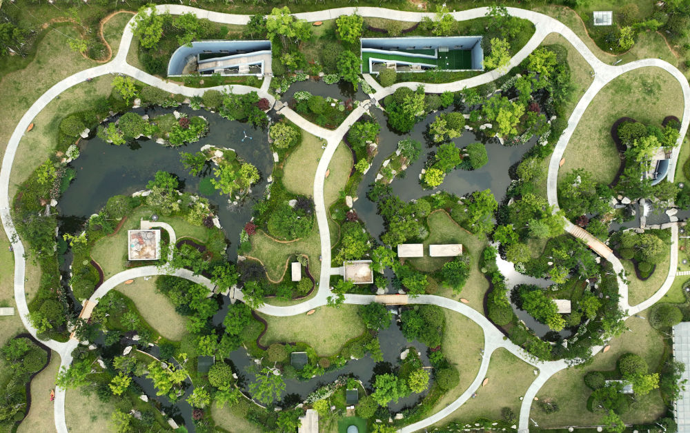 這是2023年6月15日拍攝的以“地上花園+地下治污”設(shè)計理念建設(shè)的九江市雙溪公園(無人機照片)。近年來,江西省九江市啟動中心城區(qū)水環(huán)境綜合整治工程,通過地下污水治理、岸線生態(tài)修復(fù)、興建“公園式”污水處理廠、城市智慧管網(wǎng)管控等措施,改善水環(huán)境,城市面貌煥然一新。