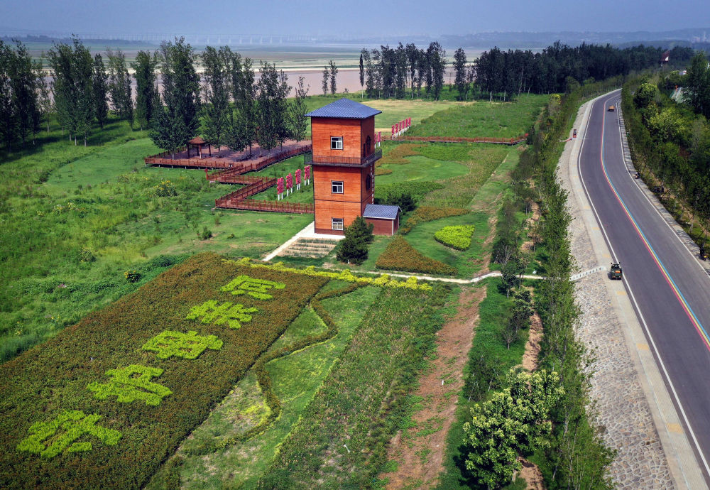 這是2022年8月10日拍攝的位于河南省三門峽市的黃河生態(tài)廊道(無人機照片)。