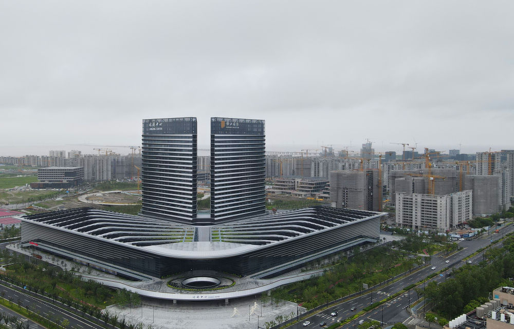 這是中國(guó)(上海)自由貿(mào)易試驗(yàn)區(qū)臨港新片區(qū)滴水湖(無(wú)人機(jī)全景照片,2023年9月6日攝)。