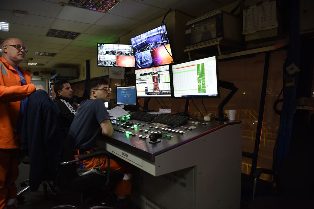 技術(shù)人員在斯梅戴雷沃鋼廠控制室里監(jiān)控生產(chǎn)過(guò)程。