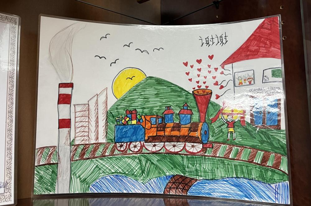 在斯梅戴雷沃鋼廠辦公樓入口處,擺放著一摞廠辦期刊。每一期封底都是一幅鋼廠子弟或當(dāng)?shù)匦W(xué)生的畫作。在孩子們眼中,鋼廠色彩斑斕:郁郁蔥蔥的山腳下,色彩鮮亮的火車頭在廠區(qū)內(nèi)穿梭,噴出“小愛心”;孩子們手持氣球,站在鋼廠援建的學(xué)校前,腳下開滿鮮花;塞中兩國(guó)員工肩并肩站在一起,兩國(guó)國(guó)旗和兩種文字的“謝謝”排列在一起。