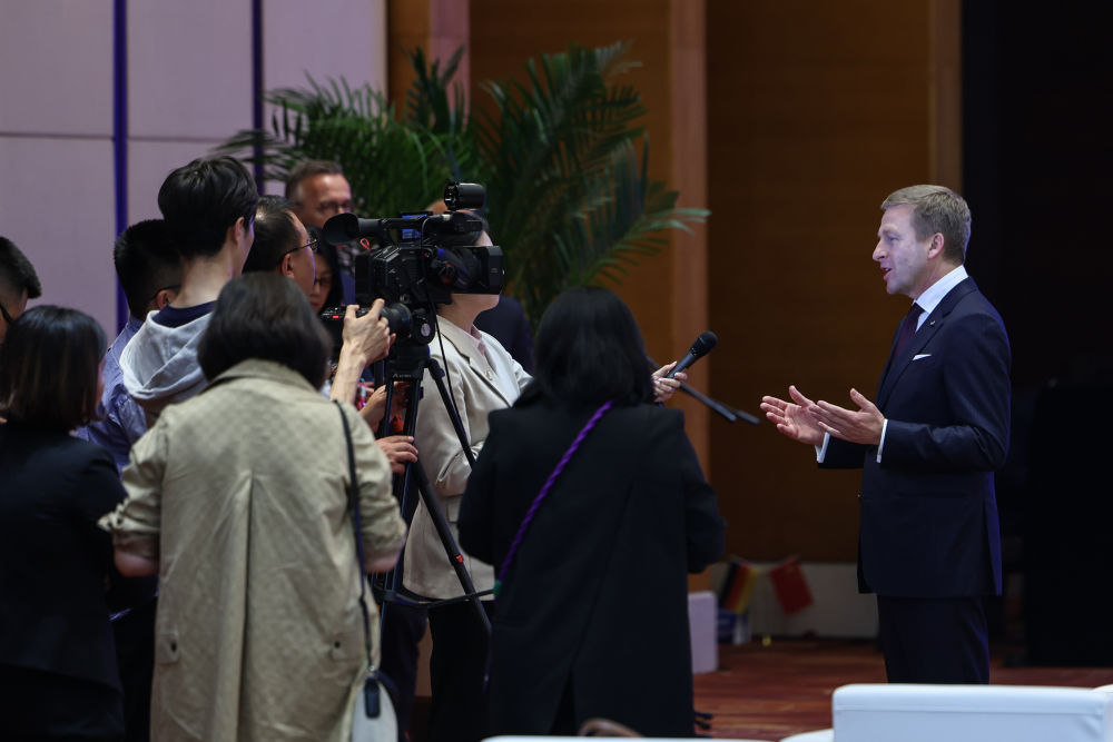 2024年4月26日,遼寧省沈陽市與寶馬集團深化戰(zhàn)略合作簽約儀式在沈陽舉行,這是寶馬集團董事長齊普策接受采訪?! ⌒氯A社記者 潘昱龍 攝