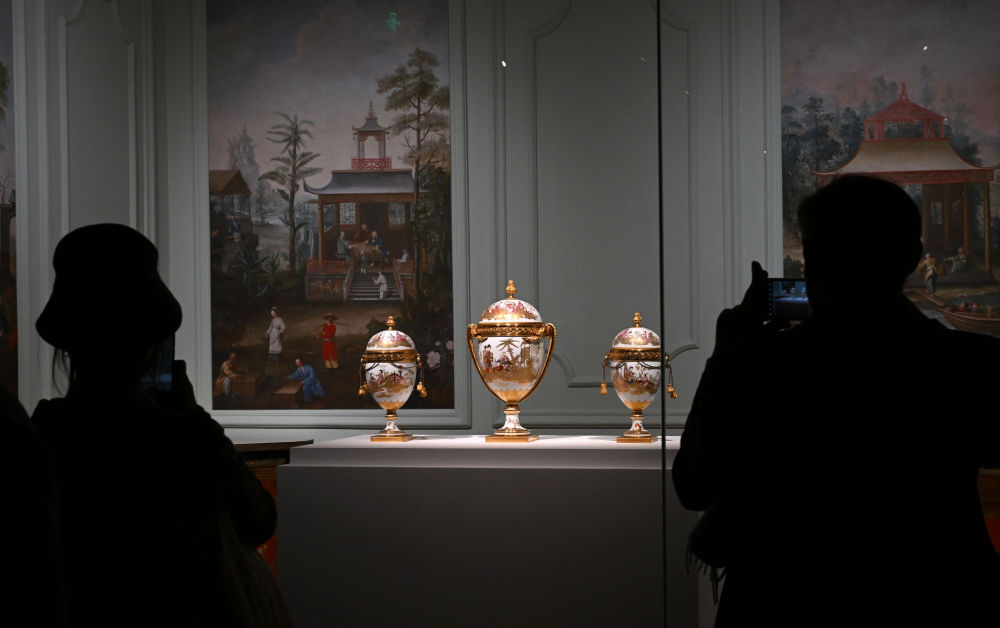 2024年4月1日,觀眾在北京故宮參觀“紫禁城與凡爾賽宮——17、18世紀的中法交往”展覽。 新華社記者 金良快 攝