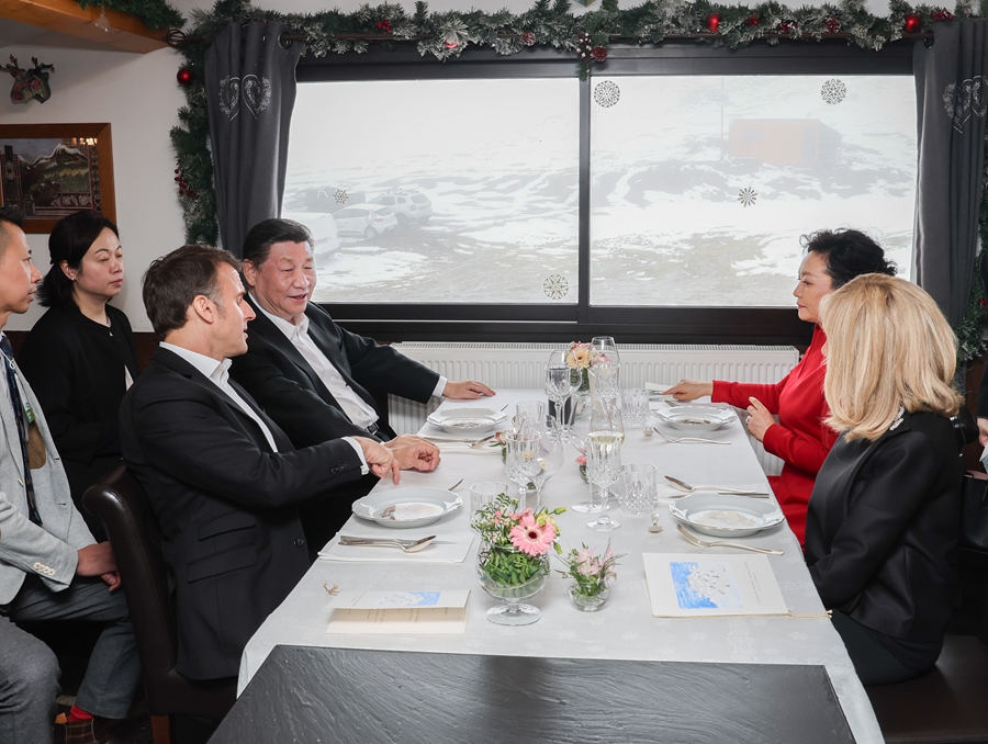 當(dāng)?shù)貢r(shí)間5月7日,應(yīng)法國總統(tǒng)馬克龍?zhí)貏e邀請(qǐng),國家主席習(xí)近平乘專機(jī)來到法國西南部上比利牛斯省訪問。在圖爾馬萊山口“牧羊人驛站”,習(xí)近平和夫人彭麗媛同馬克龍和夫人布麗吉特憑窗而坐,在輕松愉快的氛圍中就一些重要問題進(jìn)行戰(zhàn)略溝通。新華社記者 姚大偉 攝