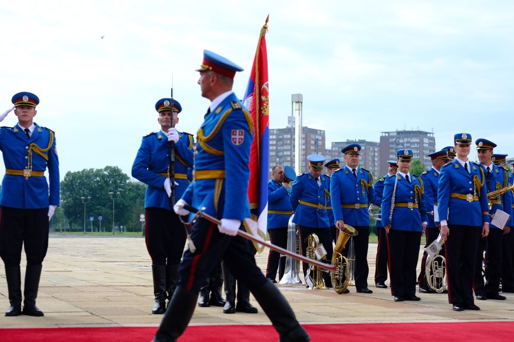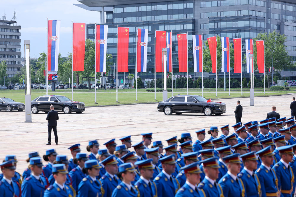當地時間5月8日,國家主席習近平在貝爾格萊德出席塞爾維亞總統(tǒng)武契奇舉行的隆重盛大歡迎儀式。歡迎儀式在塞爾維亞大廈南廣場舉行。兩國元首共同登上檢閱臺,軍樂團奏響中塞兩國國歌,鳴10響禮炮。習近平在武契奇陪同下檢閱儀仗隊。