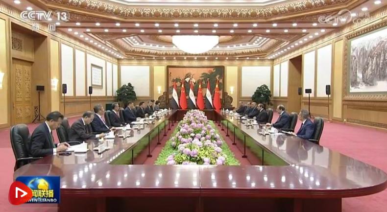 塞西表示,很高興來華進(jìn)行國事訪問并出席中阿合作論壇第十屆部長級會議開幕式。當(dāng)前世界正處于深刻復(fù)雜變化之中,中東地區(qū)深陷危機(jī)。埃方期待同中方進(jìn)一步深化全面戰(zhàn)略伙伴關(guān)系,努力促進(jìn)地區(qū)和平穩(wěn)定。埃方恪守一個中國原則,堅定支持中方在涉臺、涉港、涉藏、人權(quán)等核心利益問題上的立場,堅定支持中國實現(xiàn)國家完全統(tǒng)一。埃方歡迎更多中國企業(yè)赴埃投資合作,助力埃及制造業(yè)發(fā)展和工業(yè)化進(jìn)程。希望以今年“埃中伙伴年”為契機(jī),密切人文交流,加強(qiáng)兩國在信息通訊、人工智能、新能源、糧食安全、金融等方面合作。埃方贊賞習(xí)近平主席提出的系列全球倡議,愿同中方密切多邊協(xié)作,為人類和平進(jìn)步作出積極貢獻(xiàn)。