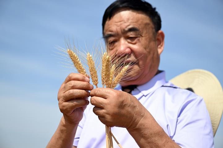 日頭正盛,71歲的種糧大戶徐淙祥深入田間,和農(nóng)技專家們一起為試驗(yàn)麥種測(cè)產(chǎn)?!八氪笞讯嗔o枬M,又是一個(gè)豐收年!”徐淙祥高興地說(shuō)。