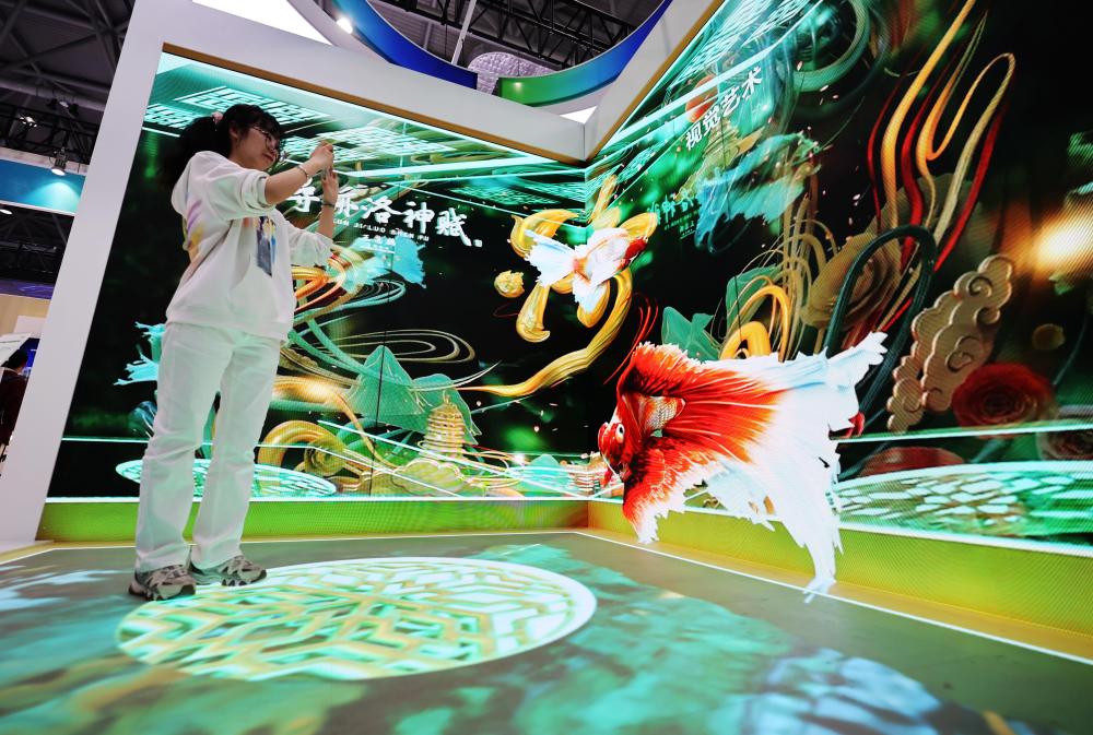 2024年4月1日,一名觀眾在安徽合肥舉辦的2024國際顯示技術(shù)大會上體驗(yàn)合肥京東方展出的一款裸眼3D快速拆裝折角屏。目前,新型顯示產(chǎn)業(yè)在安徽已形成全產(chǎn)業(yè)鏈布局。