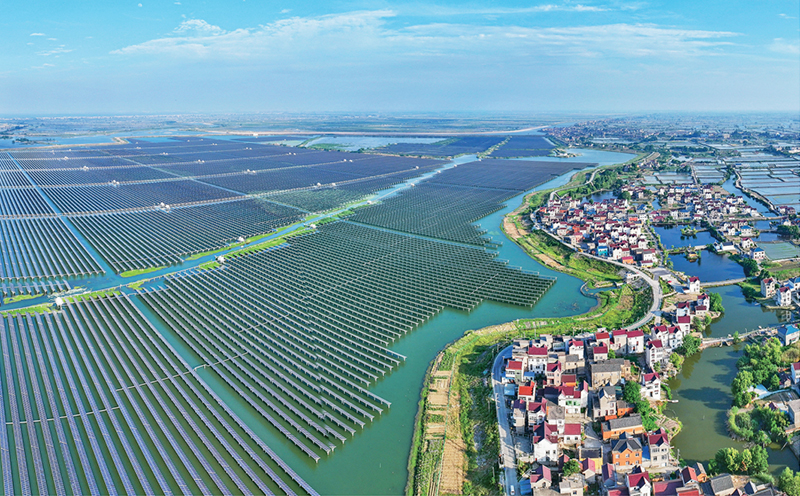 圖為2024年5月20日,安徽省馬鞍山市當涂縣大隴鎮(zhèn)的雙潭湖漁光互補光伏電站。 人民圖片 李成林/攝