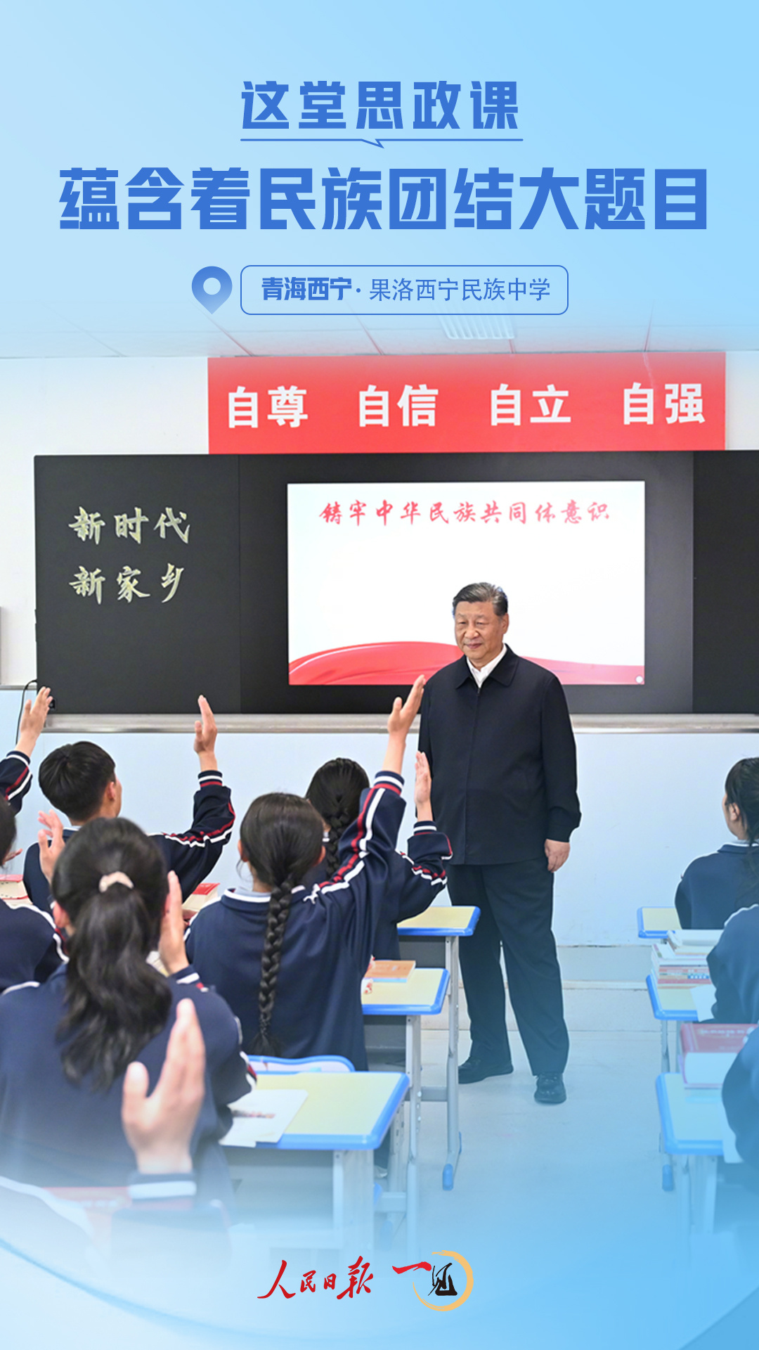 西寧城北,元朔山麓,藍天白云掩映下的果洛西寧民族中學綠意蔥蘢。6月18日,正在青海省西寧市考察的習近平總書記來到這里并觀摩了一堂思政課??倳泴λ颊n歷來很重視——這是落實立德樹人根本任務的關(guān)鍵課程,是培養(yǎng)社會主義建設者和接班人的重要保障。