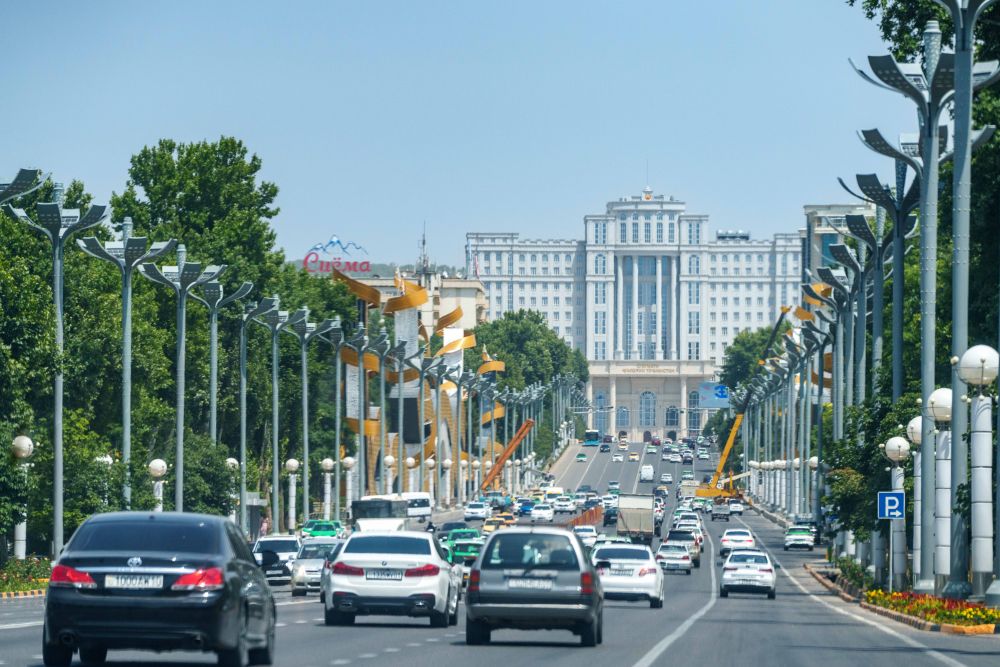 2024年7月1日,人們在塔吉克斯坦議會(huì)大樓前的廣場上休閑。