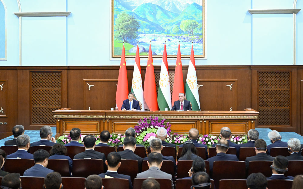 兩國元首共同簽署《中華人民共和國和塔吉克斯坦共和國關于發(fā)展新時代全面戰(zhàn)略合作伙伴關系的聯合聲明》,并共同見證交換經貿、投資、互聯互通、關鍵礦產、安全、人文等領域數十項雙邊合作文件。