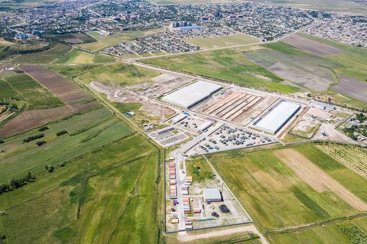 這是2019年5月21日在塔吉克斯坦丹加拉拍攝的中泰紡織廠(無人機(jī)照片)。新華社記者 張若玄 攝