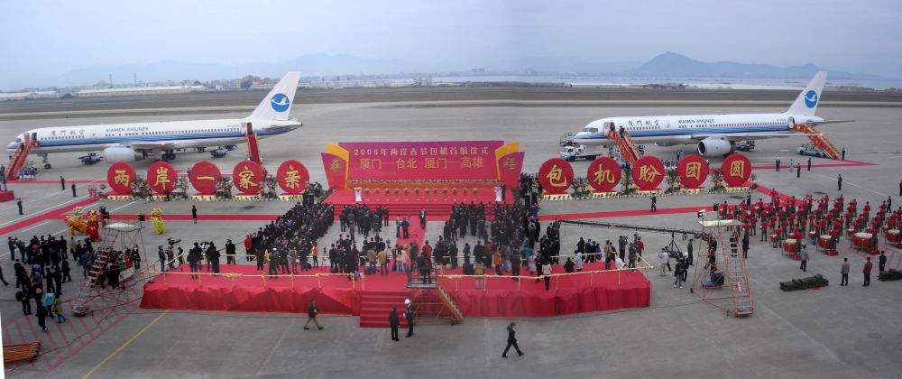2006年,廈航作為新增廈門航點(diǎn)的唯一運(yùn)營(yíng)航空公司,執(zhí)行了廈門-臺(tái)北、廈門-高雄航線的包機(jī)任務(wù)。這是首航儀式現(xiàn)場(chǎng)。