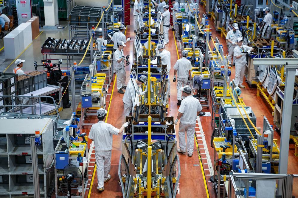 浙江湖州市長興經(jīng)濟技術(shù)開發(fā)區(qū)一家汽車部件公司,全自動機器人高速運轉(zhuǎn)生產(chǎn)新能源汽車配件。