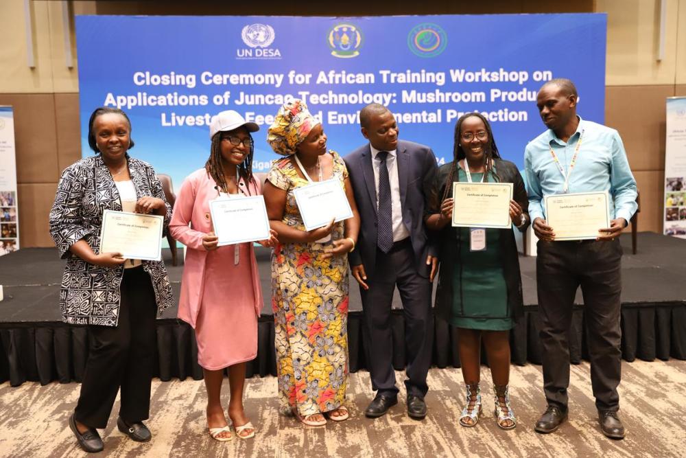 8月初,在非洲地區(qū)菌草技術(shù)培訓(xùn)班舉辦期間,聯(lián)合國(guó)官員和使團(tuán)代表團(tuán)專(zhuān)程赴盧旺達(dá)考察菌草技術(shù)和產(chǎn)業(yè)在非洲地區(qū)的發(fā)展?!拔液芨吲d同其他聯(lián)合國(guó)官員一起,親眼見(jiàn)證菌草技術(shù)以實(shí)際行動(dòng)造福民眾?!甭?lián)合國(guó)秘書(shū)長(zhǎng)辦公室主任考特尼·拉特雷說(shuō),菌草技術(shù)具有“可負(fù)擔(dān)”的突出優(yōu)勢(shì),“對(duì)非洲大陸所有發(fā)展中國(guó)家很有價(jià)值、非常適用”。