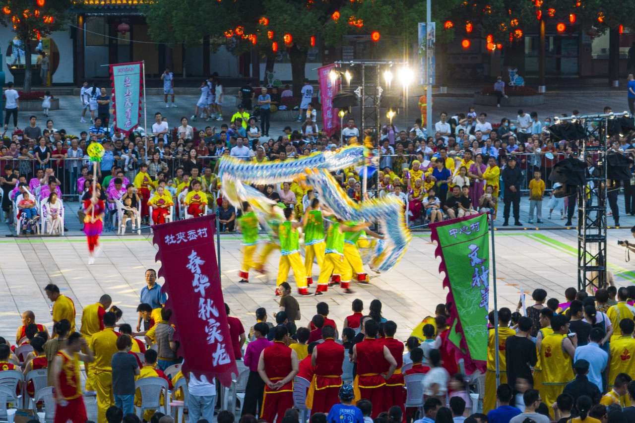 寧波市鎮(zhèn)海區(qū)九龍湖鎮(zhèn),當(dāng)?shù)鼐用褡园l(fā)組成的14支舞龍隊(duì)同臺競技 省農(nóng)業(yè)農(nóng)村廳供圖