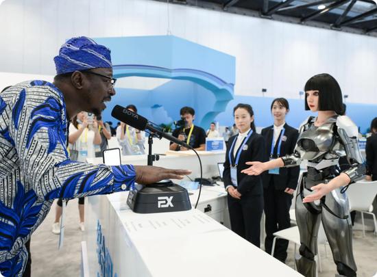 △中國剛剛在世界機(jī)器人大會上展出的智能語音機(jī)器人也在中非合作論壇上亮相