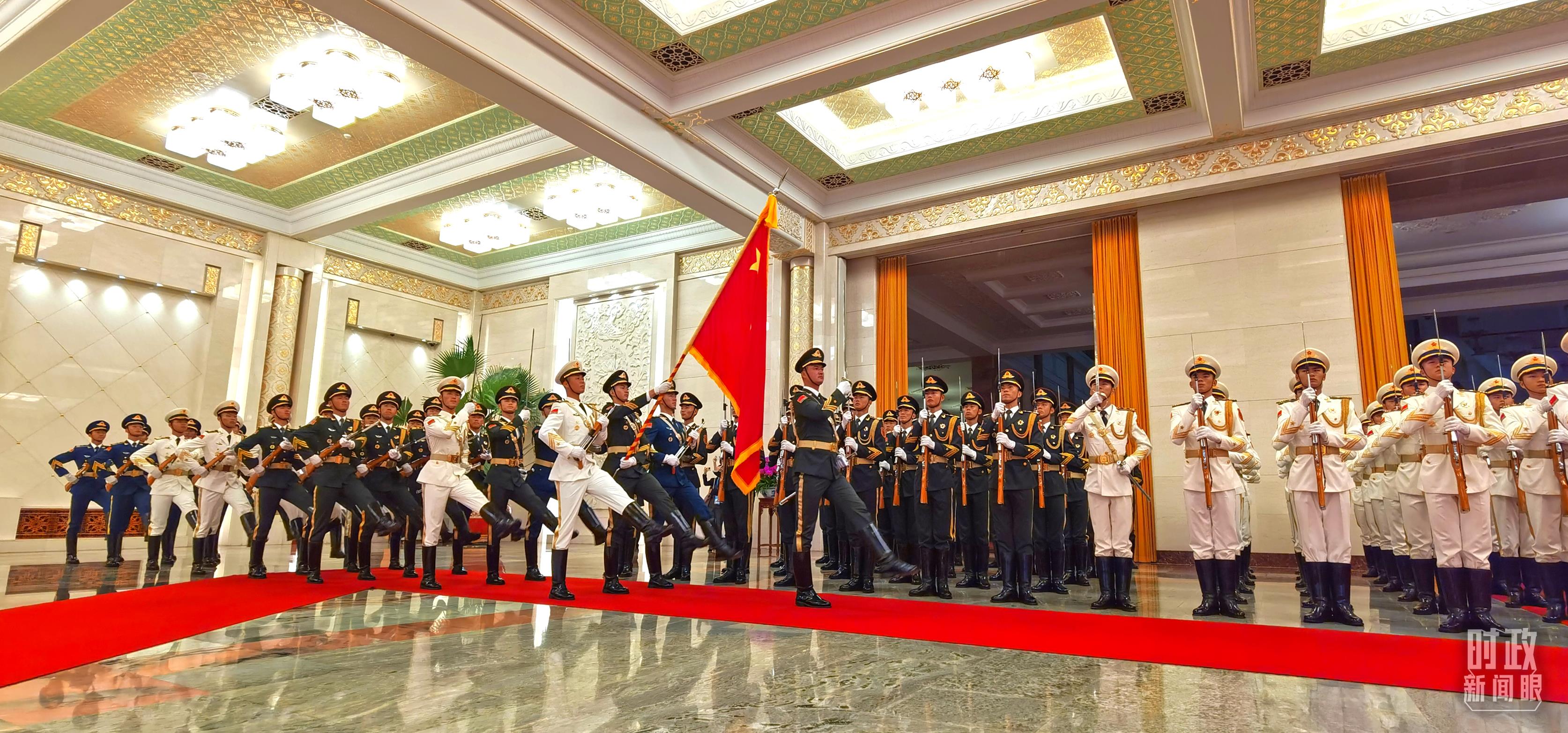 禮兵列隊(duì)迎接外賓。(總臺央視記者鐘銳拍攝)