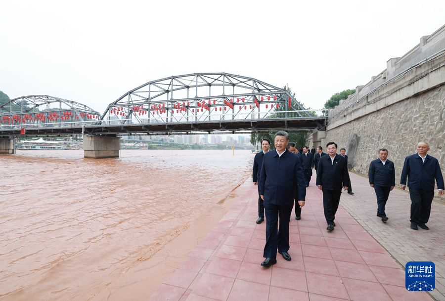 9月10日至13日,中共中央總書記、國家主席、中央軍委主席習(xí)近平在甘肅考察。這是11日下午,習(xí)近平在黃河蘭州中山橋段考察。新華社記者 王曄 攝