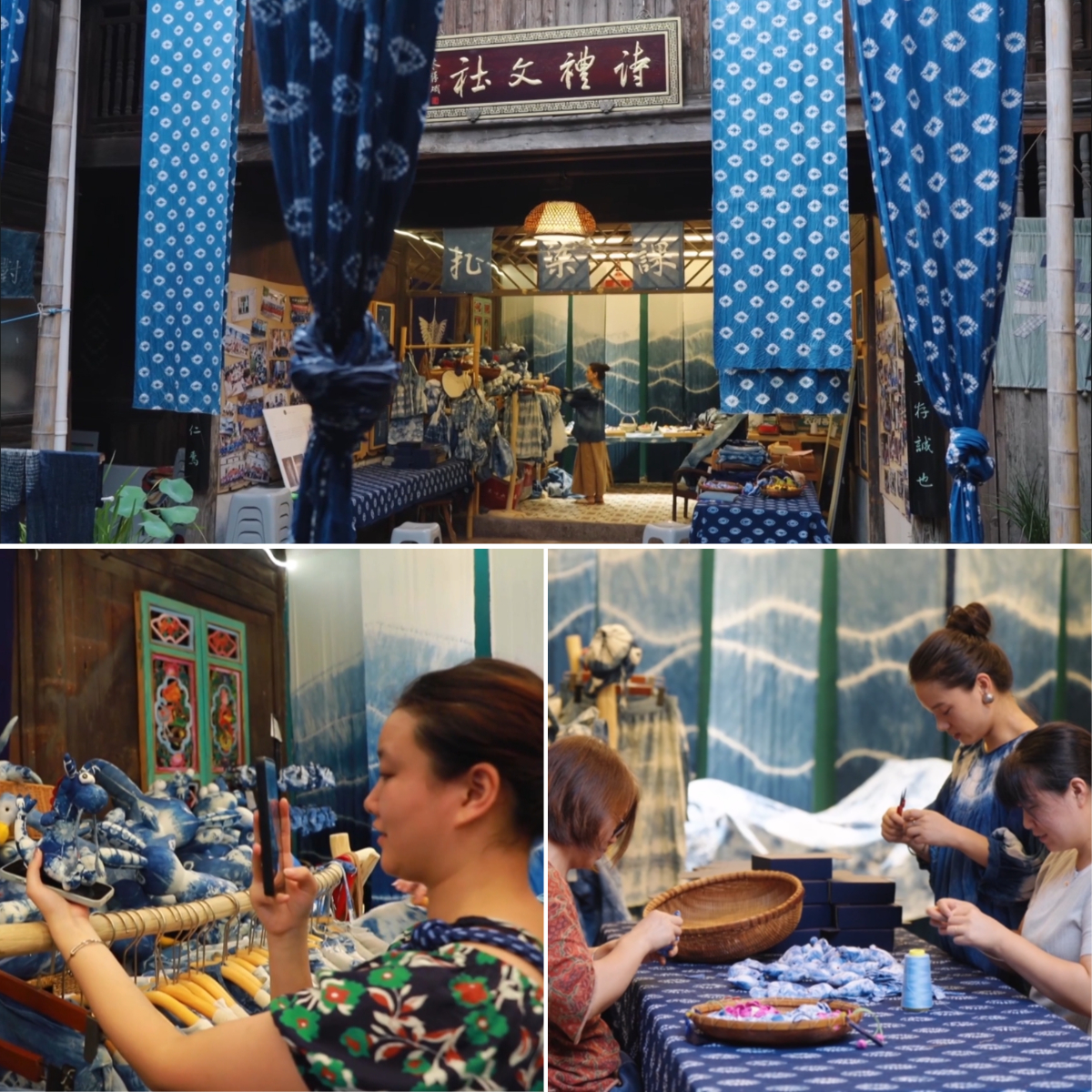 盡管她把家里的三姑六婆都找來(lái)幫忙,印染手作依然供不應(yīng)求。等不及的游客們甚至自己動(dòng)手,客串起了“伙計(jì)”。