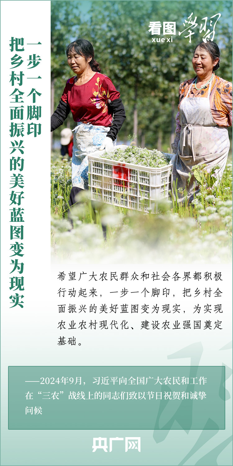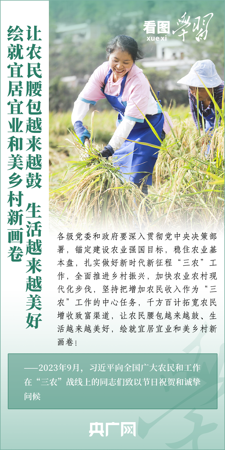 民族要復興,鄉(xiāng)村必振興。黨的十八大以來,每到各地考察調研,習近平總書記總會去農(nóng)村看一看,走進田間地頭,和農(nóng)民拉拉家常??倳洀娬{,“建設宜居宜業(yè)和美鄉(xiāng)村是農(nóng)業(yè)強國的應有之義”,“要讓農(nóng)民腰包越來越鼓、生活越來越美好”。