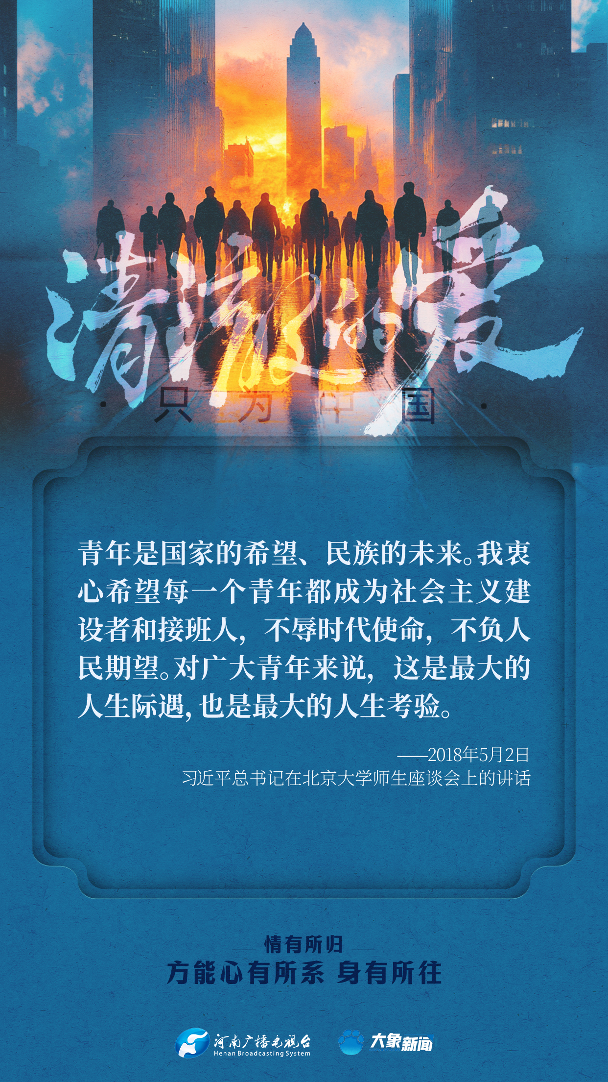 習近平總書記對廣大青年寄予厚望。黨的十八大以來,他多次來到青年中間,同大家談人生、話理想,鼓勵青年人心系祖國,志存高遠,腳踏實地,在奮斗中創(chuàng)造精彩人生,為祖國和人民貢獻青春和力量。