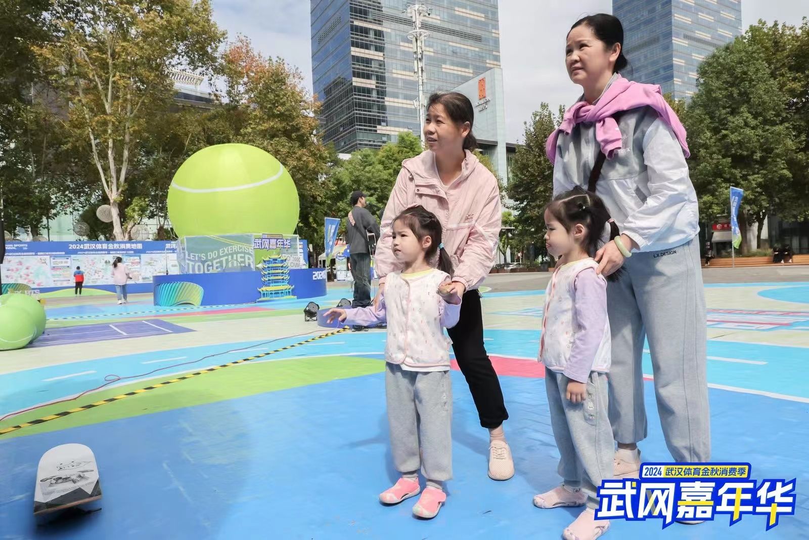 10月4日,武漢天地商圈熱鬧非凡,武漢體育金秋消費(fèi)季——武網(wǎng)嘉年華分會(huì)場(chǎng),琳瑯滿目的市集展銷,設(shè)置了網(wǎng)球、籃球、沖浪等多樣運(yùn)動(dòng)互動(dòng)裝置,還有多個(gè)特色城市打卡點(diǎn),吸引了市民游客前來(lái)體驗(yàn)。游客樊女士介紹,專程帶孩子過(guò)來(lái)看比賽,平時(shí)也會(huì)打網(wǎng)球,在這里動(dòng)一動(dòng)熱熱身,很有意思。