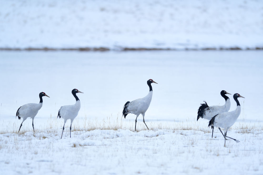 在三江源國(guó)家公園黃河源園區(qū)漫步的黑頸鶴。新華社記者 張龍 攝