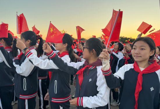 2024年10月1日,天安門廣場舉行升國旗儀式,慶祝中華人民共和國成立75周年。北京2000名大中小學師生現(xiàn)場觀禮升國旗儀式。