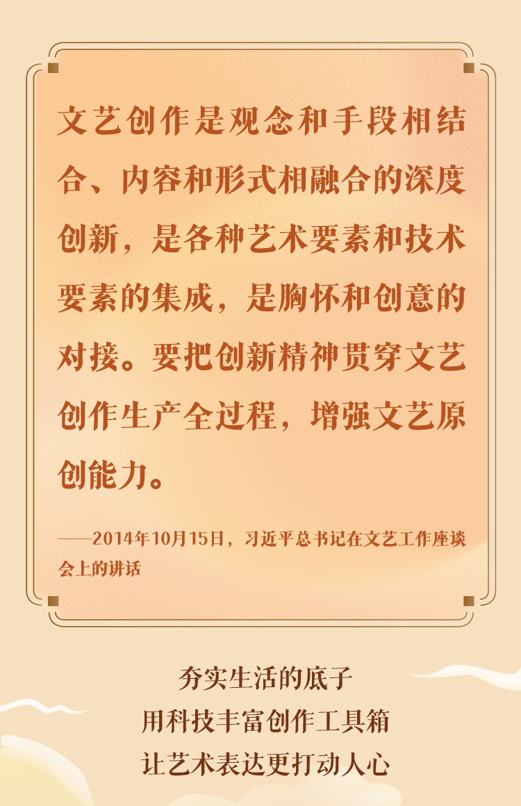 文藝是時(shí)代前進(jìn)的號(hào)角,最能代表一個(gè)時(shí)代的風(fēng)貌,最能引領(lǐng)一個(gè)時(shí)代的風(fēng)氣。十年來,在習(xí)近平總書記的指引下,我國(guó)文藝面貌發(fā)生深刻變化,一系列代表性作品、標(biāo)志性現(xiàn)象和時(shí)代性特征,勾畫了新時(shí)代文藝的獨(dú)特景觀,彰顯了新時(shí)代文藝的豐富內(nèi)涵。