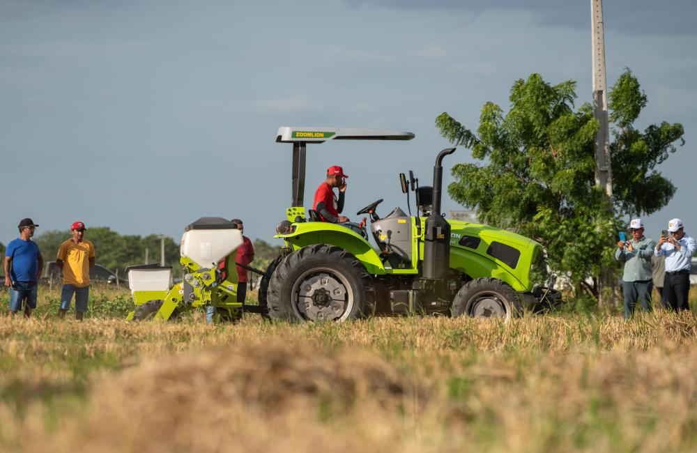2024年2月2日,在巴西阿波迪的中巴農(nóng)業(yè)機(jī)械化合作示范農(nóng)場(chǎng),一款中國生產(chǎn)的農(nóng)機(jī)在田間示范作業(yè),吸引了人們觀看。中巴農(nóng)業(yè)機(jī)械化合作示范農(nóng)場(chǎng)旨在助力巴西農(nóng)業(yè)生產(chǎn),促進(jìn)中小農(nóng)戶減貧和鄉(xiāng)村振興。