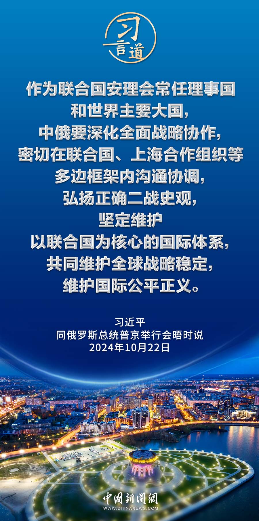 當?shù)貢r間10月22日下午,國家主席習近平在喀山克里姆林宮同俄羅斯總統(tǒng)普京舉行會晤。習近平指出——