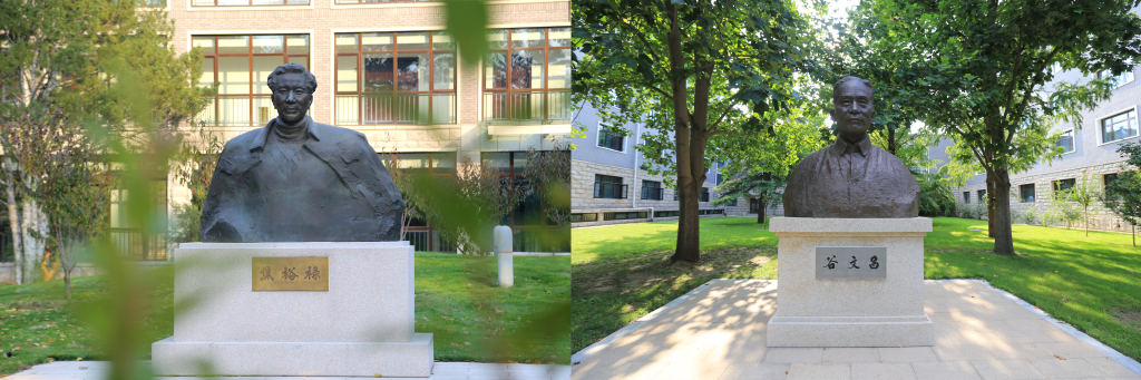 左圖為中央黨校(國家行政學院)校園內(nèi)的焦裕祿雕塑,右圖為校園內(nèi)的谷文昌雕塑。