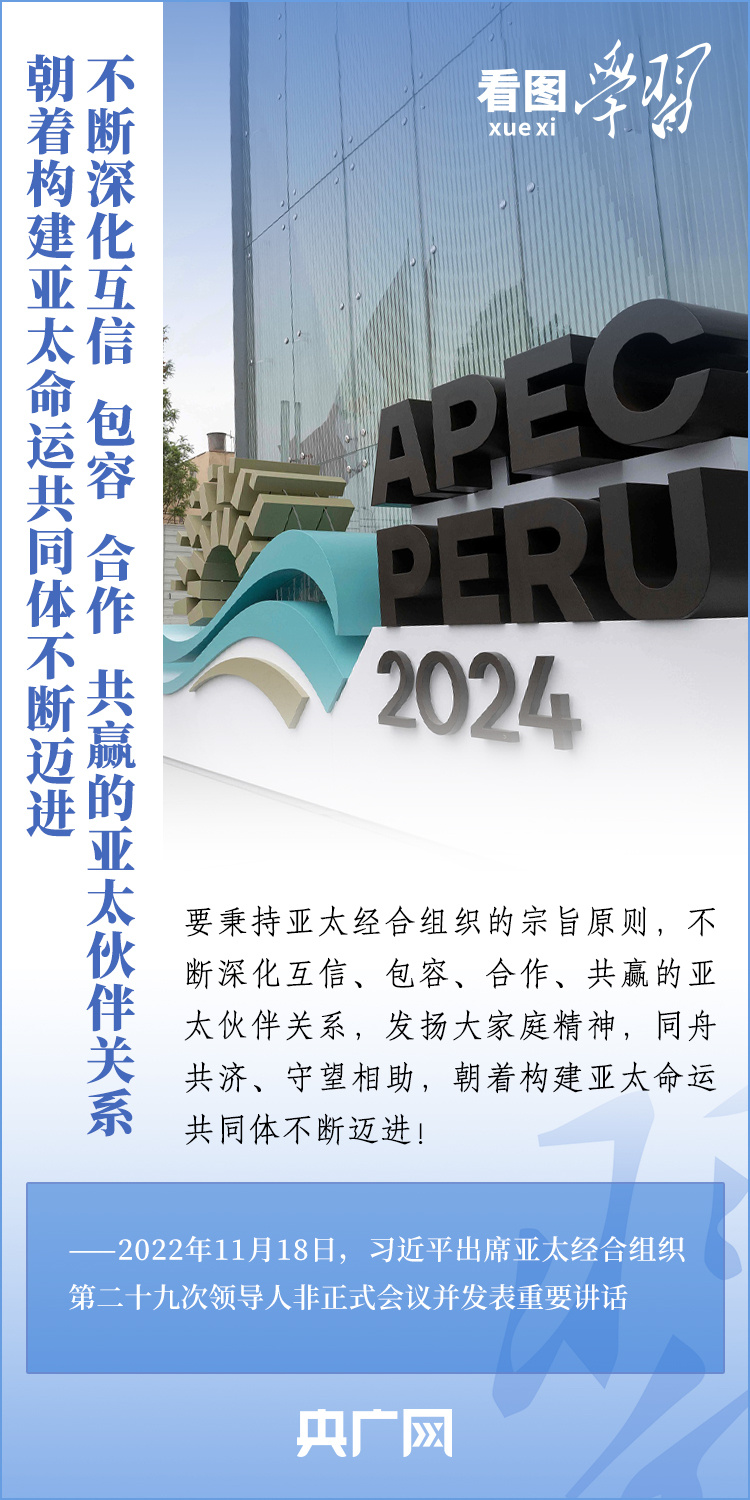 亞太經(jīng)合組織(APEC)是亞太地區(qū)層級最高、領(lǐng)域最廣、最具影響力的經(jīng)濟合作機制。11月13日至17日,習(xí)近平主席赴利馬出席亞太經(jīng)合組織第三十一次領(lǐng)導(dǎo)人非正式會議并對秘魯進(jìn)行國事訪問。從“亞太夢想”到“APEC方式”,從“亞太伙伴關(guān)系”到“亞太命運共同體”……2013年以來,習(xí)近平主席出席或主持歷次APEC領(lǐng)導(dǎo)人非正式會議,就全球及地區(qū)形勢、亞太區(qū)域合作、APEC未來發(fā)展等一系列重大問題闡釋中國主張,推動不斷深化互信、包容、合作、共贏的亞太伙伴關(guān)系,建設(shè)開放、活力、強韌、和平的亞太共同體。一起來學(xué)習(xí)!