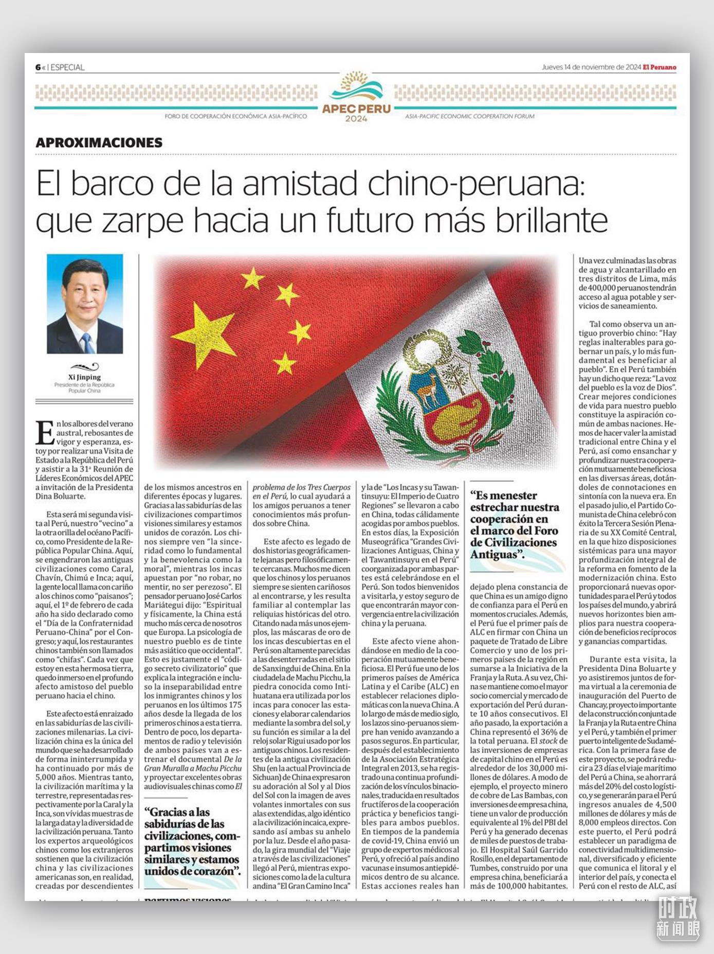 △習(xí)主席在《秘魯人報》發(fā)表題為《讓中秘友好之船揚帆遠航》的署名文章。(總臺國廣記者吳倩)