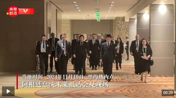當?shù)貢r間11月19日,國家主席習近平在里約熱內(nèi)盧出席二十國集團領導人峰會期間會見阿根廷總統(tǒng)米萊。