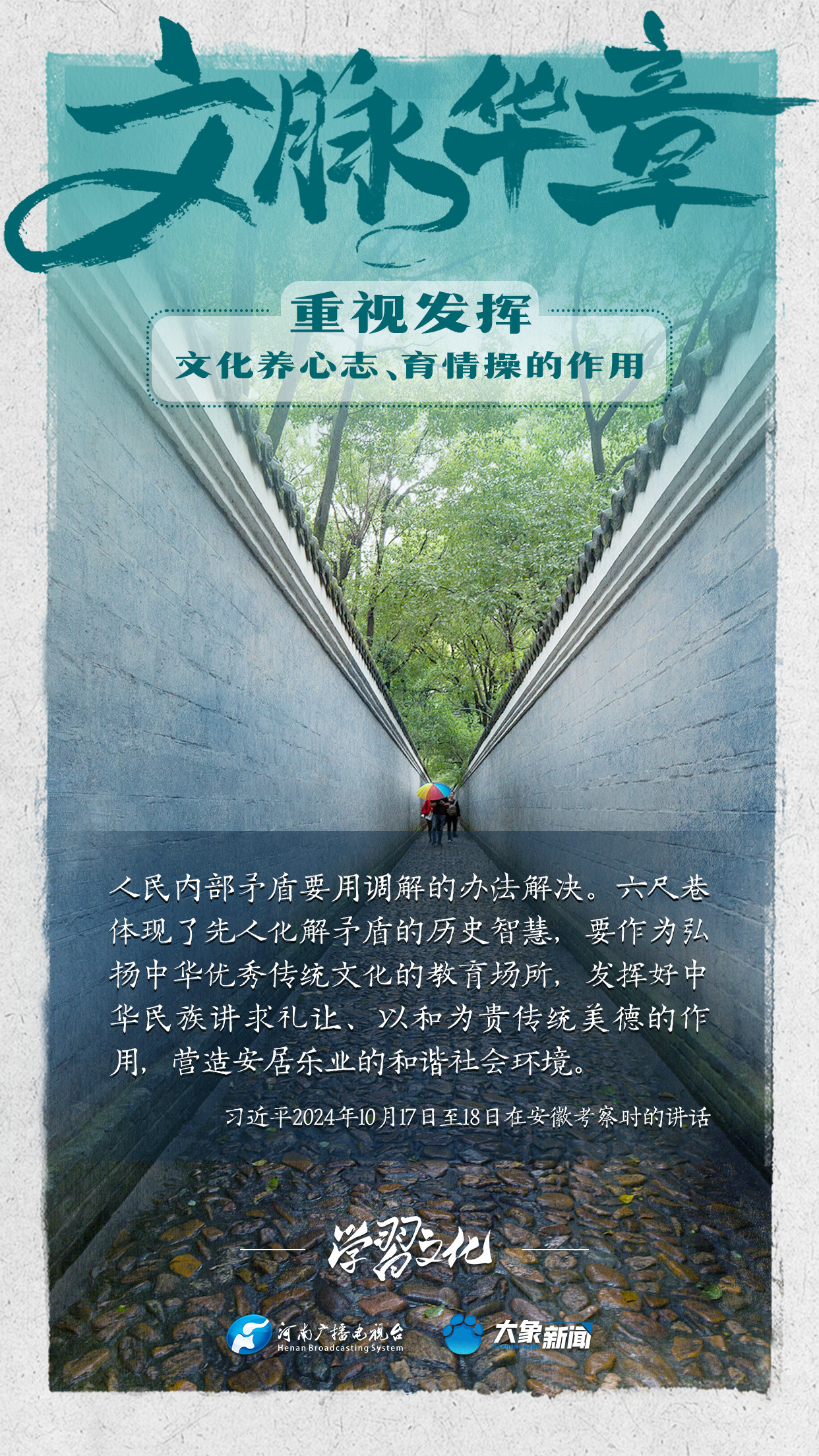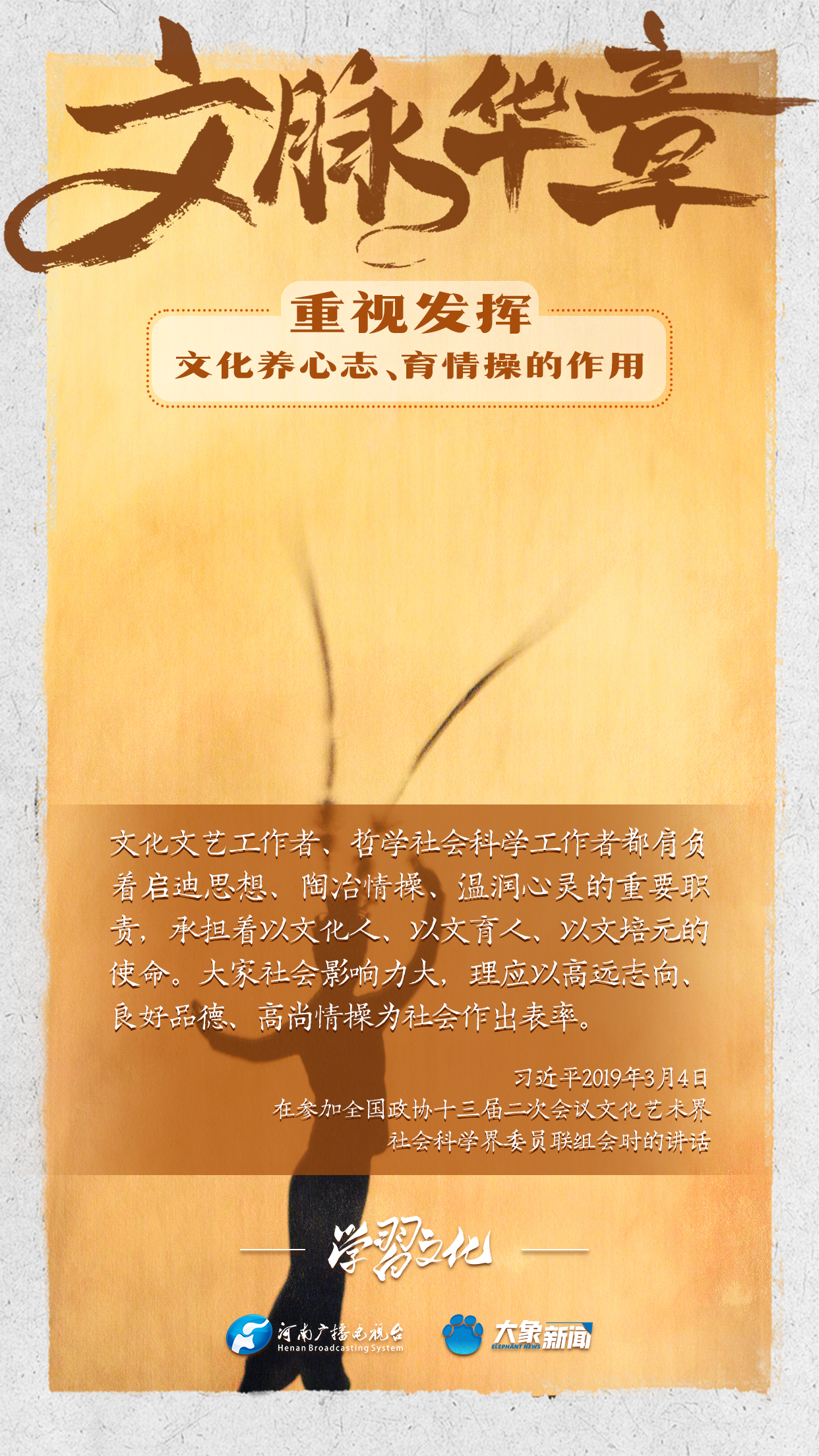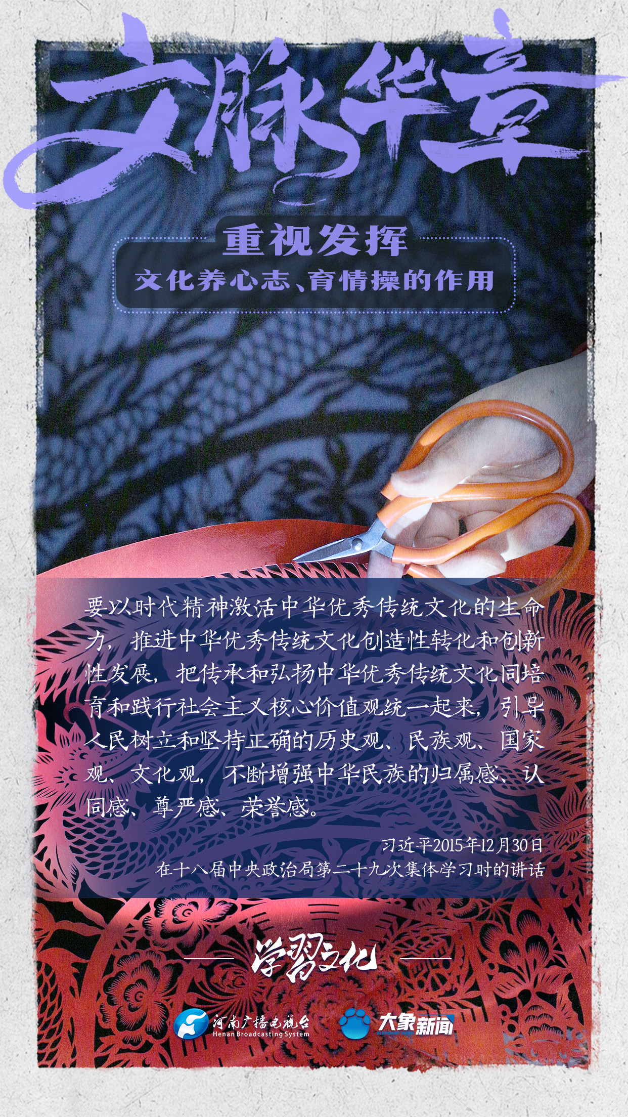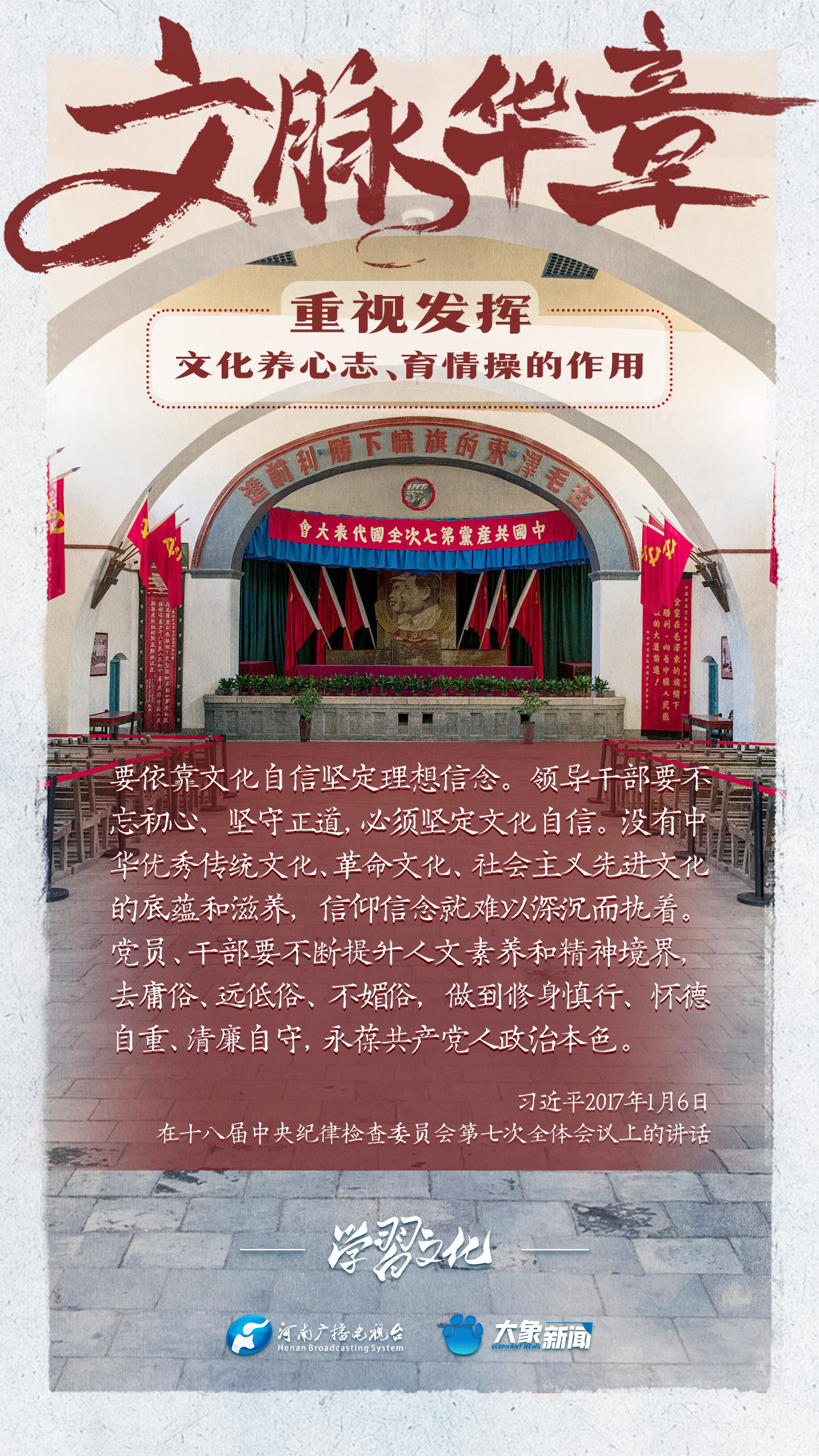 習(xí)近平總書(shū)記在主持中共中央政治局第十七次集體學(xué)習(xí)時(shí)強(qiáng)調(diào),重視發(fā)揮文化養(yǎng)心志、育情操的作用,涵養(yǎng)全民族昂揚(yáng)奮發(fā)的精神氣質(zhì)??倳?shū)記高度重視文化的作用,發(fā)表了一系列重要講話,倡導(dǎo)以文載道、以文傳聲、以文化人。我們一起學(xué)習(xí)。
