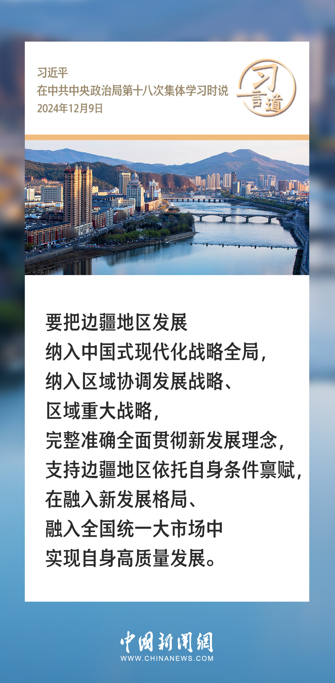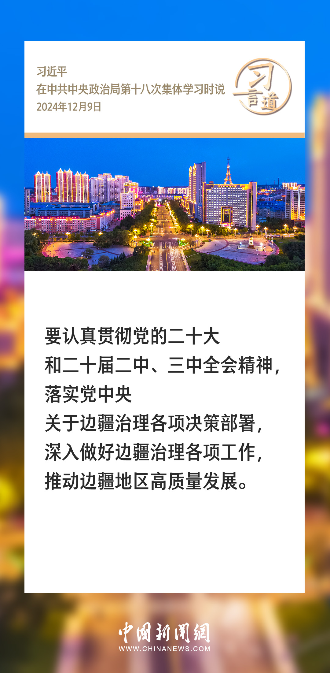 中共中央政治局12月9日就我國(guó)歷史上的邊疆治理進(jìn)行第十八次集體學(xué)習(xí)。中共中央總書(shū)記習(xí)近平在主持學(xué)習(xí)時(shí)強(qiáng)調(diào)——