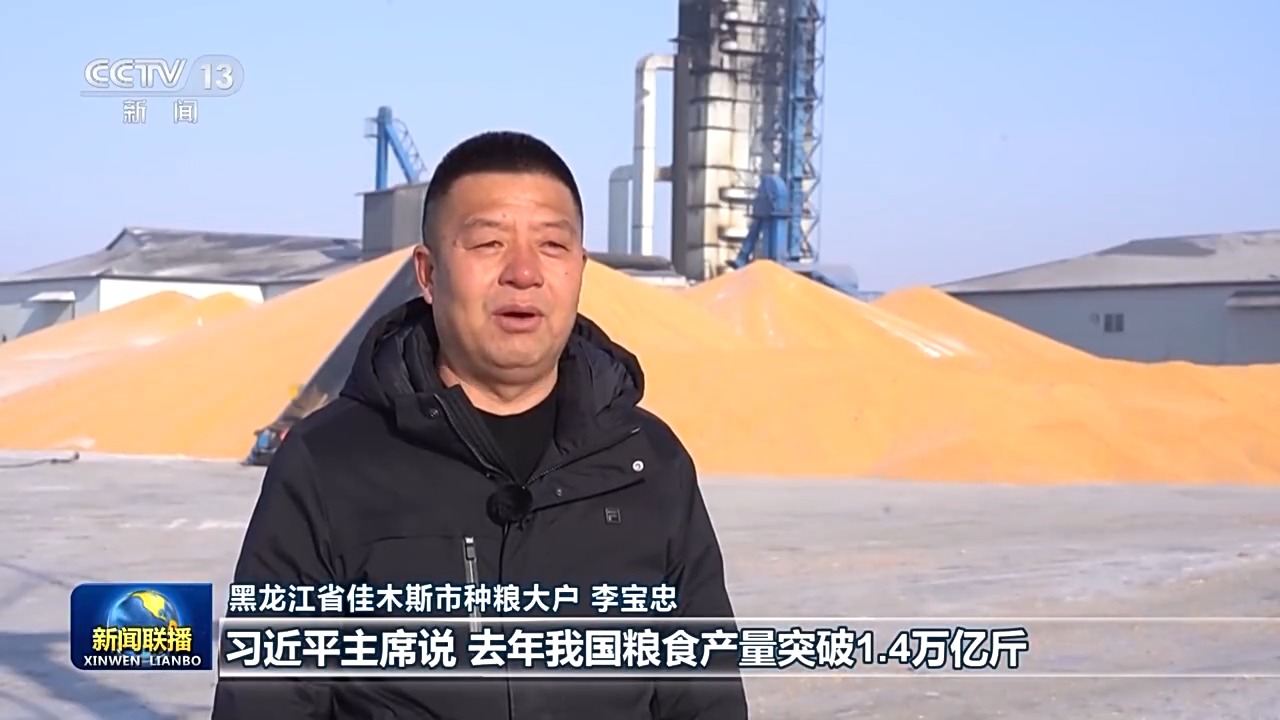 黑龍江省佳木斯市種糧大戶 李寶忠:習(xí)近平主席說,去年我國糧食產(chǎn)量突破1.4萬億斤,中國碗裝了更多中國糧。聽到這話我心里特別自豪。今年春耕之前,我們要更新購置大型高端智能的玉米收割機,我要和鄉(xiāng)親們一起加油干,在農(nóng)業(yè)現(xiàn)代化的道路上扎實走好每一步,用我們的雙手把中國飯碗端得更牢。