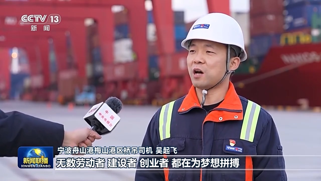 寧波舟山港梅山港區(qū)橋吊司機 吳起飛:習(xí)近平總書記在2025年新年賀詞里說,無數(shù)勞動者、建設(shè)者、創(chuàng)業(yè)者都在為夢想拼搏。2024年,我們實現(xiàn)了寧波舟山港梅山港區(qū)年集裝箱吞吐量超一千萬的目標(biāo)。2025年,和團隊的小伙伴們一起,把智慧港口建設(shè)好,為海港的發(fā)展貢獻力量。