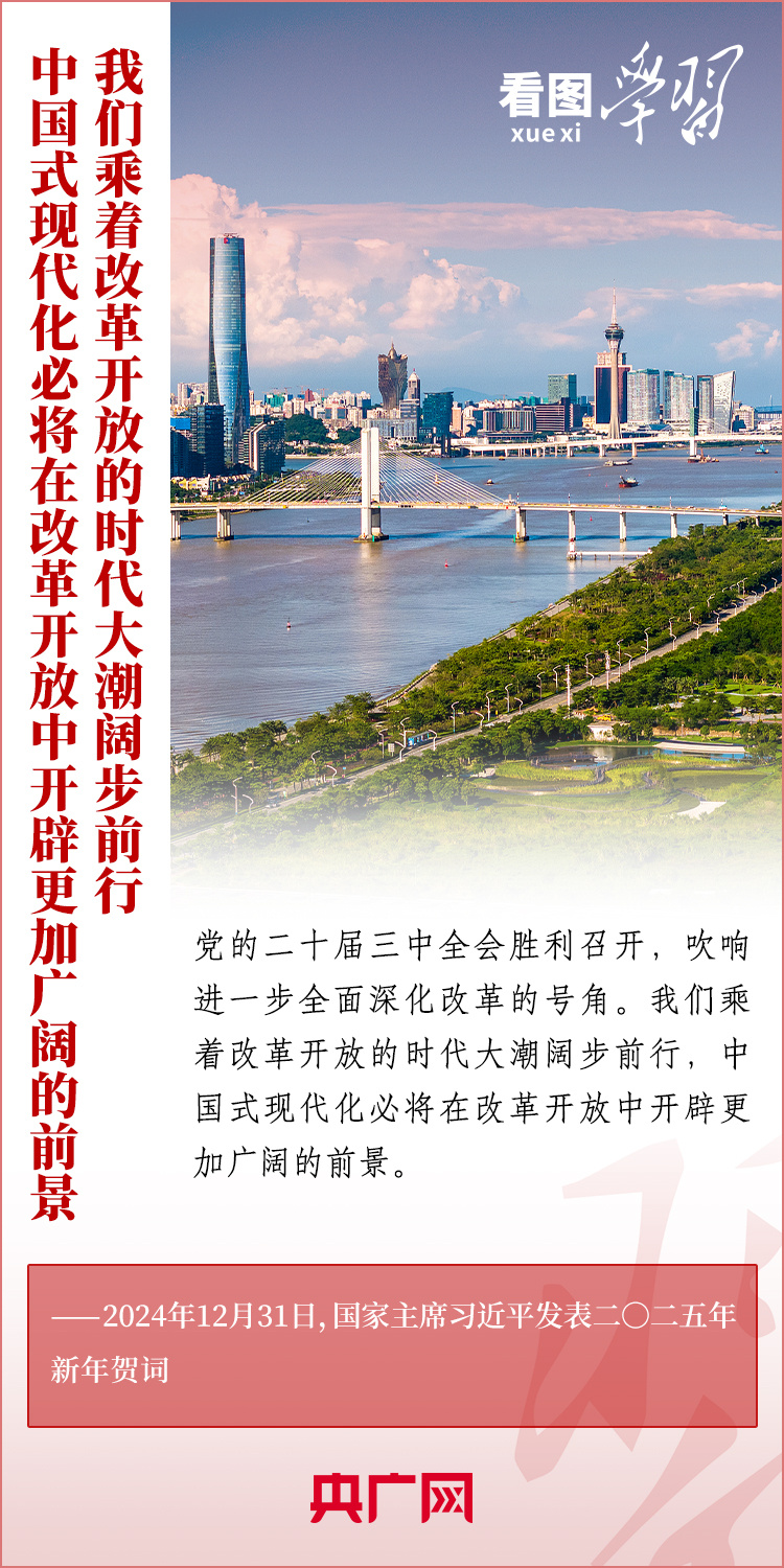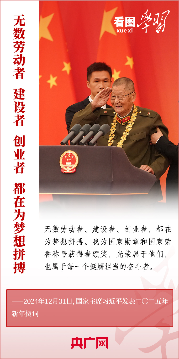 “夢(mèng)雖遙,追則能達(dá);愿雖艱,持則可圓。”新年前夕,習(xí)近平主席發(fā)表二〇二五年新年賀詞。在溫暖有力的講述中,習(xí)主席深情回望過去一年中國(guó)不平凡的奮斗歷程、精彩瞬間,感慨大家一道經(jīng)歷的風(fēng)雨彩虹、難忘時(shí)刻,贊美無(wú)數(shù)為夢(mèng)想拼搏的勞動(dòng)者、建設(shè)者、創(chuàng)業(yè)者。習(xí)主席說,中國(guó)式現(xiàn)代化的新征程上,每一個(gè)人都是主角,每一份付出都彌足珍貴,每一束光芒都熠熠生輝。讓我們充滿信心,在新的一年接續(xù)奮斗!