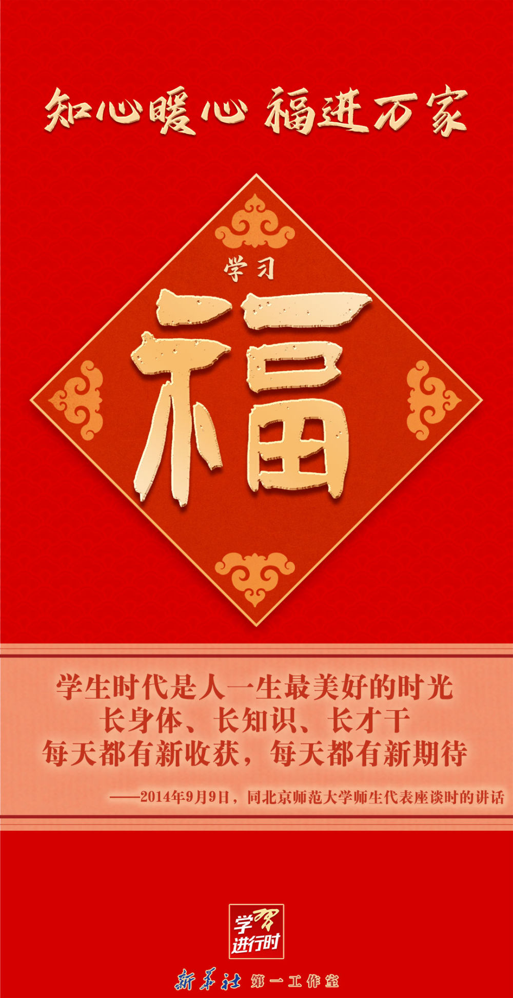 【學(xué)習(xí)進(jìn)行時(shí)】迎春納福,是中國人的春節(jié)習(xí)俗。一個(gè)“?!弊?,承載著中國人對(duì)美好生活的向往。這些年,習(xí)近平總書記很多知心話道出了我們對(duì)幸福的追求。乙巳蛇年春節(jié)來臨之際,一起重溫。