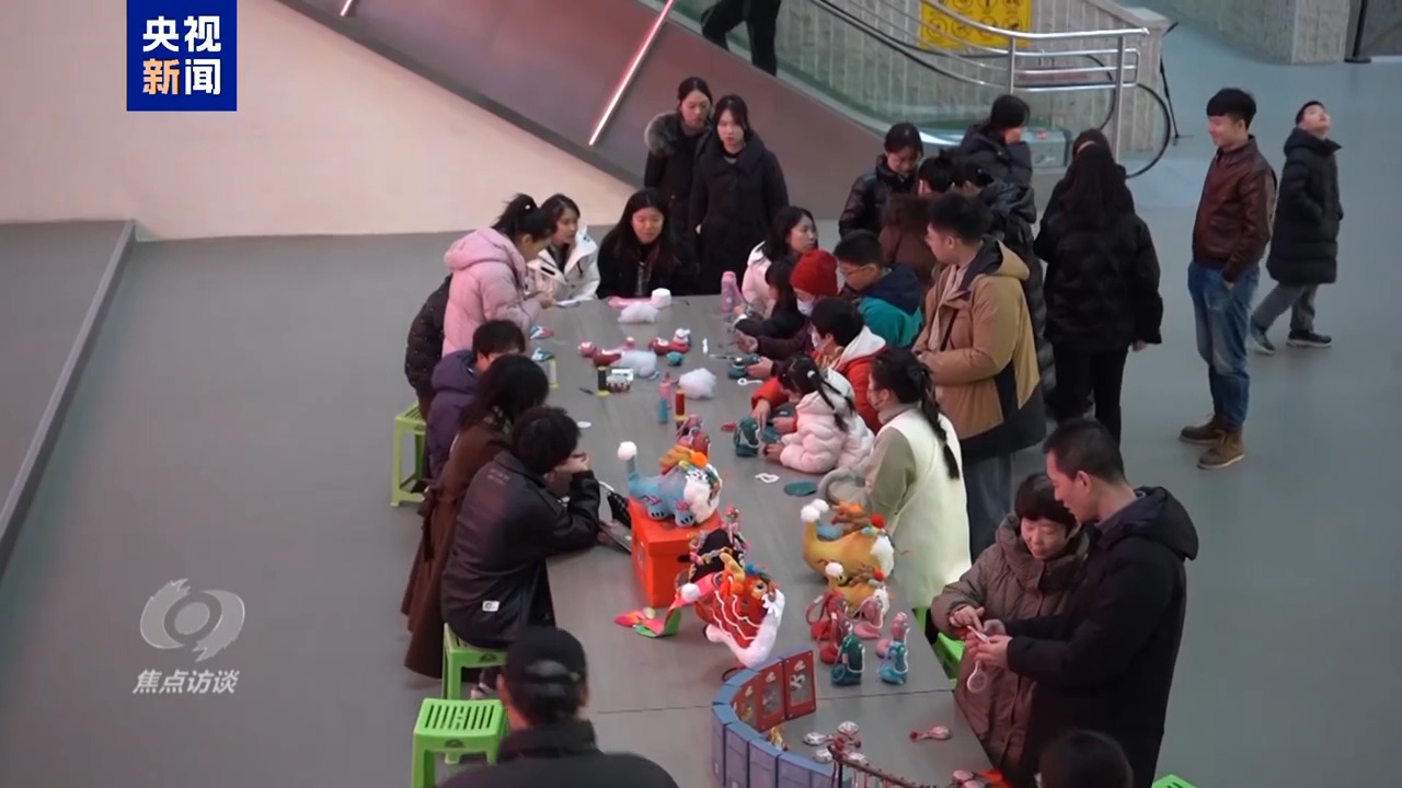 專家在進(jìn)行專業(yè)的修復(fù),觀眾的新春體驗活動也已經(jīng)開始。