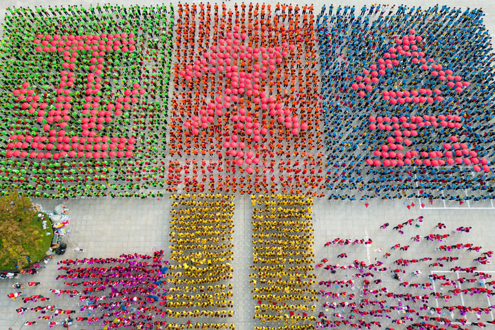 這是2023年7月8日拍攝的在哈爾濱太陽島景區(qū)太陽石廣場舉行的慶祝儀式現(xiàn)場(無人機照片)。當(dāng)日,中國哈爾濱市獲得2025年第九屆亞洲冬季運動會舉辦權(quán)。新華社記者 張濤 攝