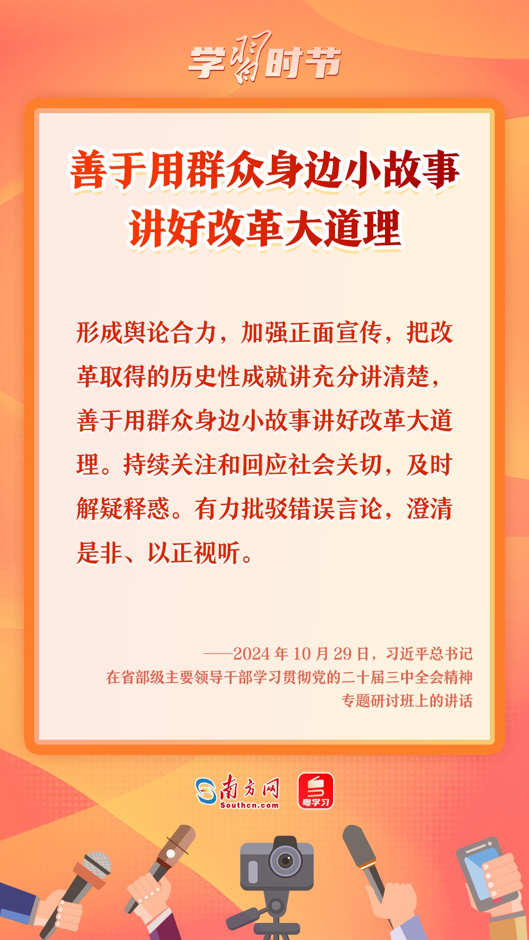 新時(shí)代新征程,世界百年未有之大變局加速演進(jìn),中華民族偉大復(fù)興進(jìn)入關(guān)鍵時(shí)期,戰(zhàn)略機(jī)遇和風(fēng)險(xiǎn)挑戰(zhàn)并存,新聞?shì)浾摴ぷ鞯闹匾匀找嫱怀?,?fù)雜性與日俱增。在習(xí)近平總書記發(fā)表“2·19”重要講話九周年之際,讓我們重溫習(xí)近平總書記對(duì)新聞?shì)浾摴ぷ鞯闹匾撌龊椭匾甘?,汲取不斷?chuàng)新求變、講好中國(guó)故事的原動(dòng)力。