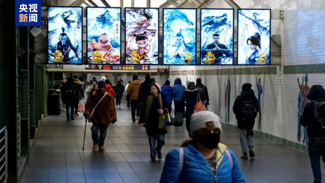 △《哪吒2》海報(bào)亮相美國(guó)紐約多個(gè)地鐵站。